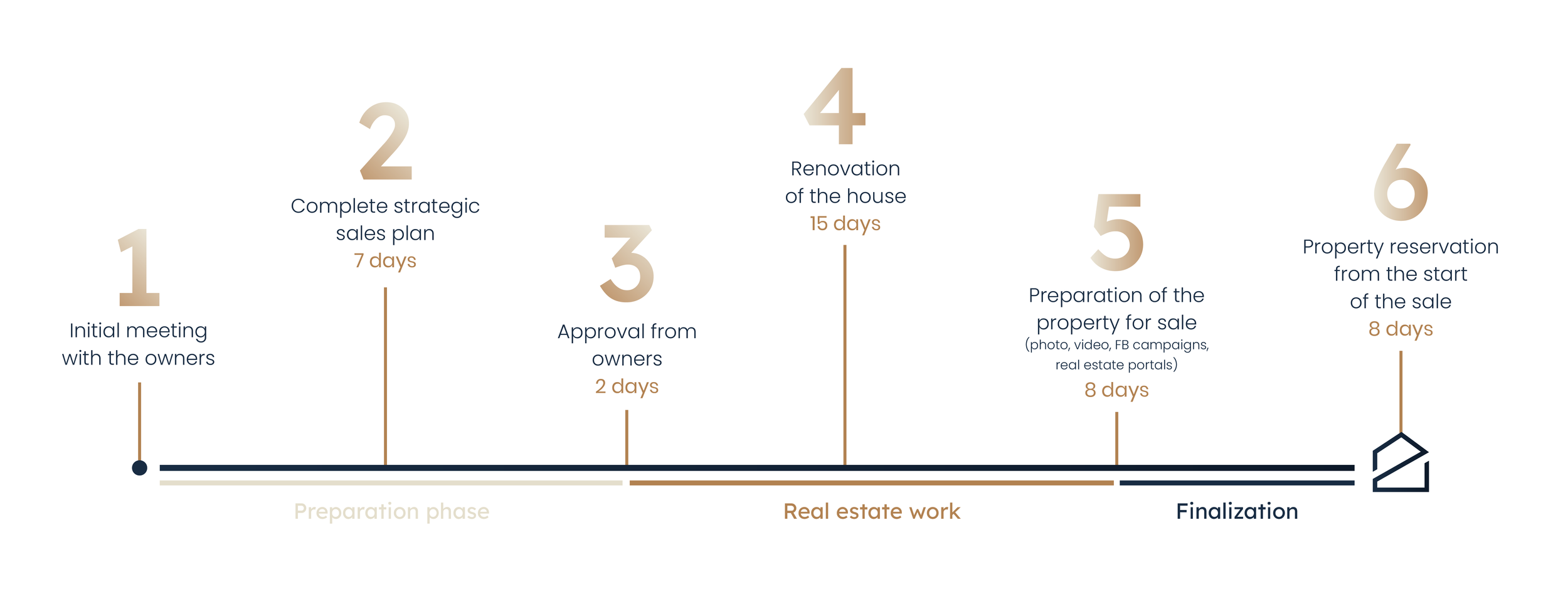 We sat down with the architect, interior designer, construction company, creatives, and gradually approached the ideal scope of the renovation. Within a week, we created a complete plan and presented it to the owners. We take into account also the projected increase in the market value of the property.